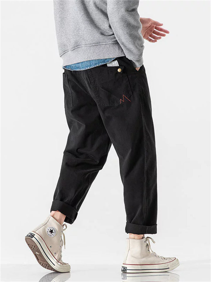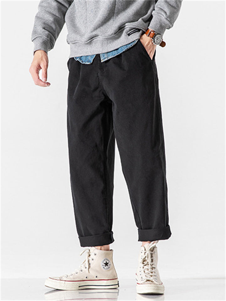 Men's Korean Style Simple Casual Solid Color Straight Leg Cargo Pants