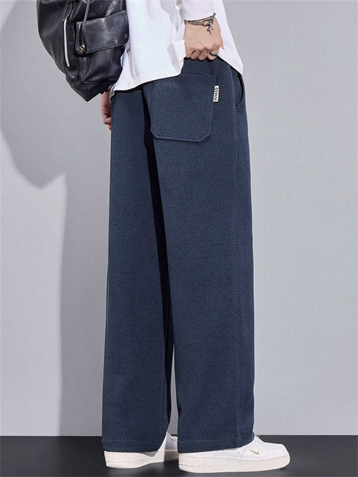 Men's Loose Fit Wide-Leg Drape Twill Knitted Pants with Elastic Waist