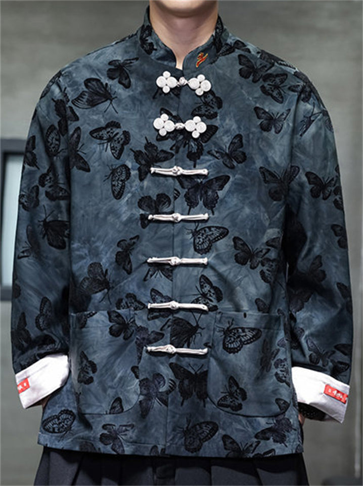 Men's Spring Butterfly Print Chinese Style Jacket with Knot Buttons