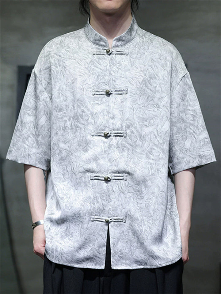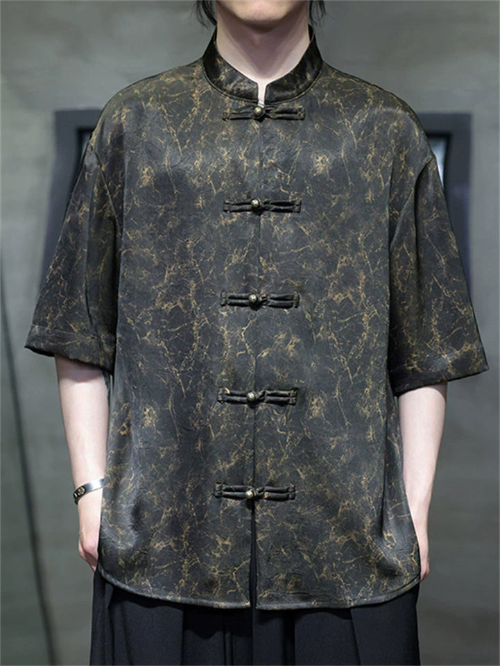 Men's Summer Cool Chinese Style Stand Collar Marble Print Half Sleeve Shirts