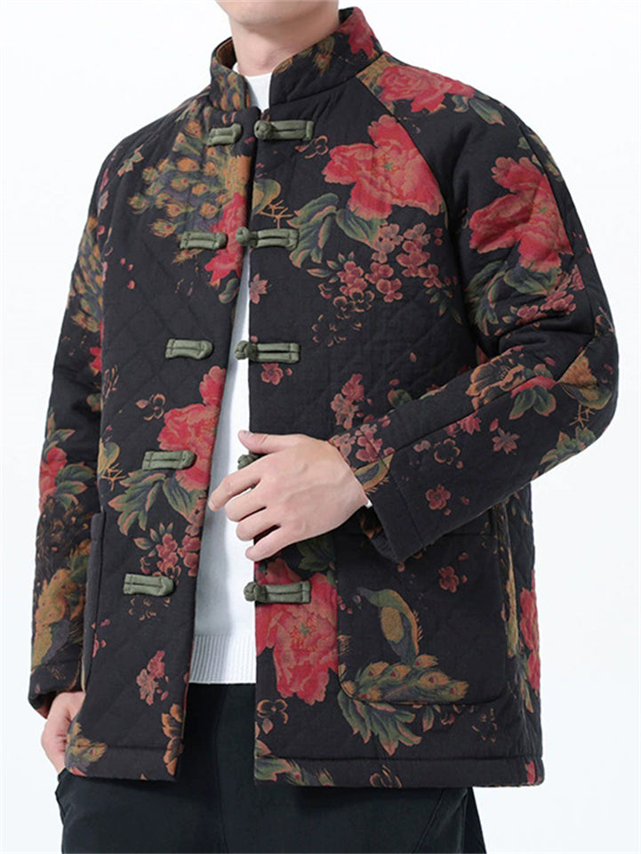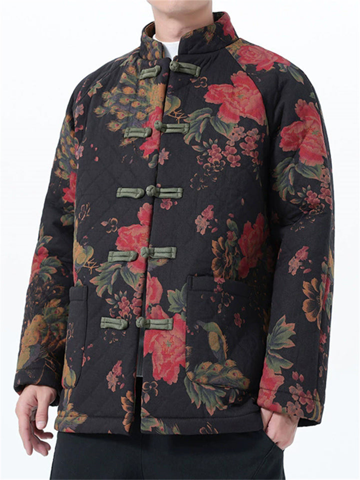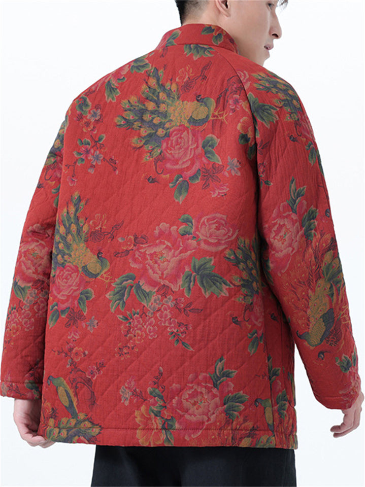 Mens Vintage Chinese Floral Print Quilted Tang Suit Jacket Warm Coats