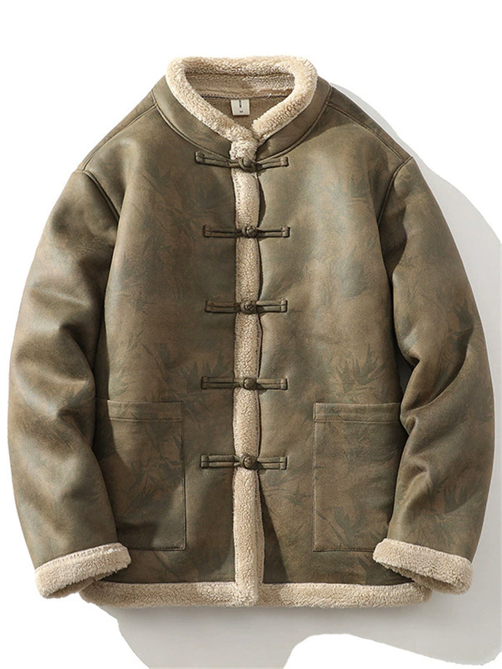 Men's Winter Faux Suede Fleeced Lined Frog Button Warm Coats