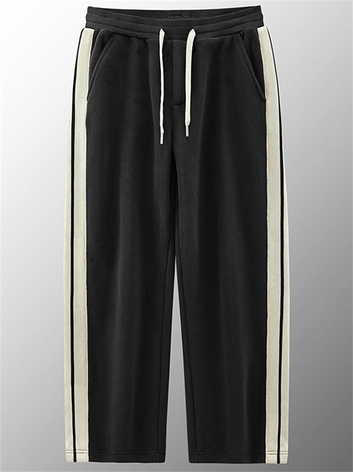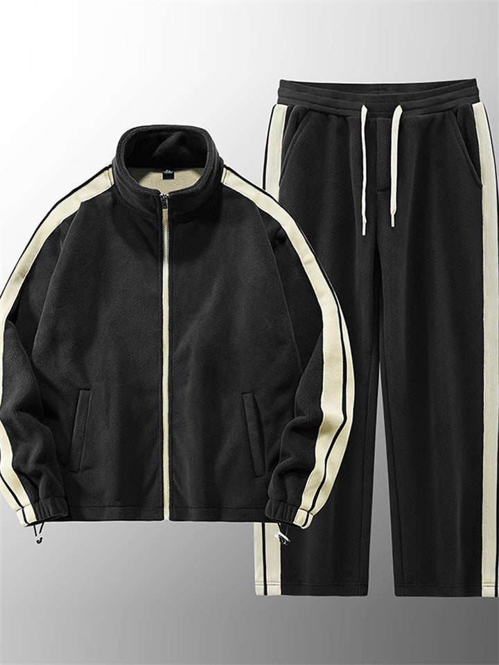 Men's Winter Fleece Lined Striped Stand Collar Tracksuit Set