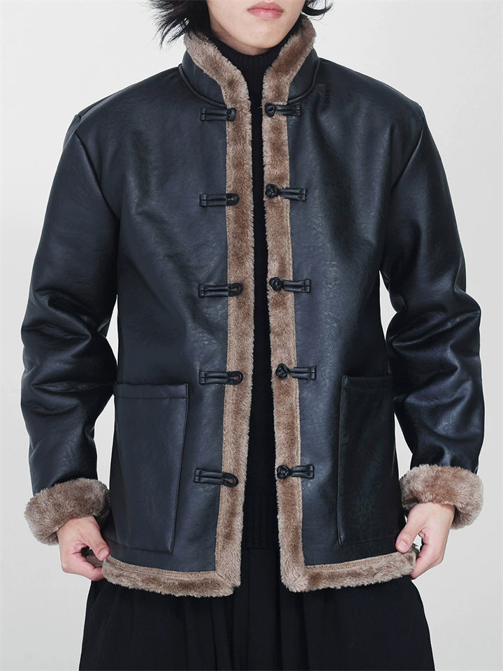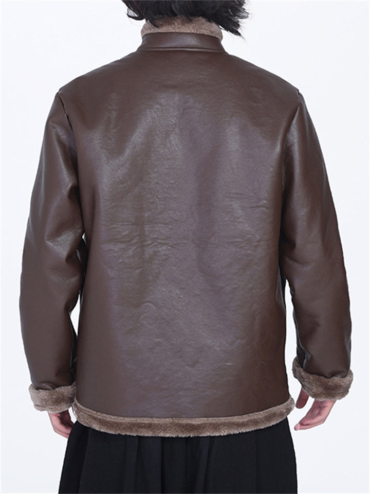 Men's Winter Warm Faux Leather Thermal Lined Tang Suit Coats