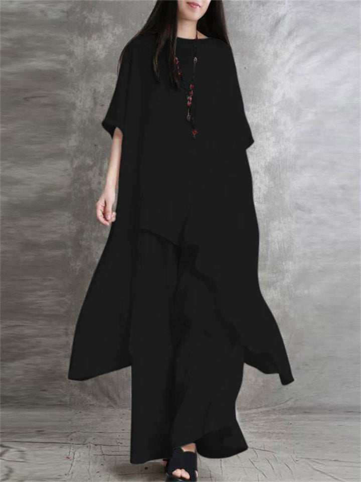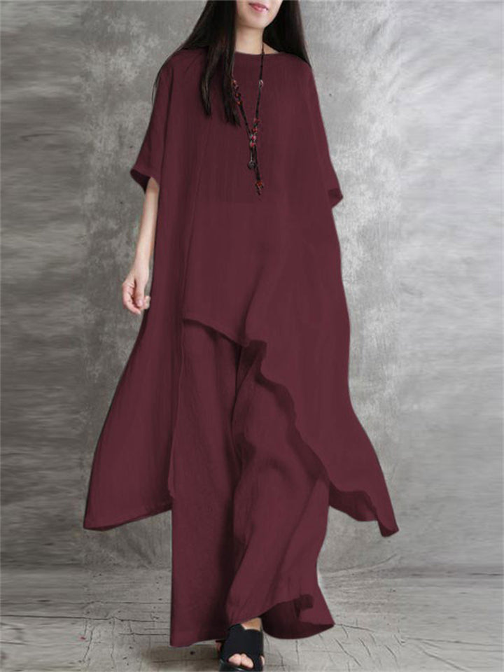 Women's Ethnic Holiday Style Loose Round Neck Top and Pants Set
