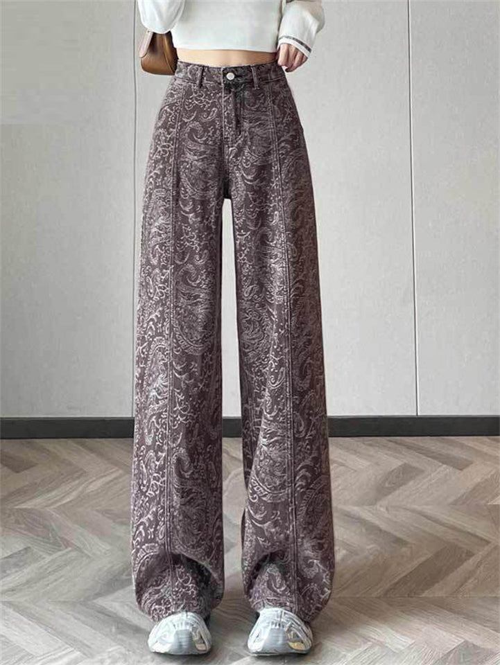 Women's Stylish Printed High Waist Wide Leg Denim Jeans
