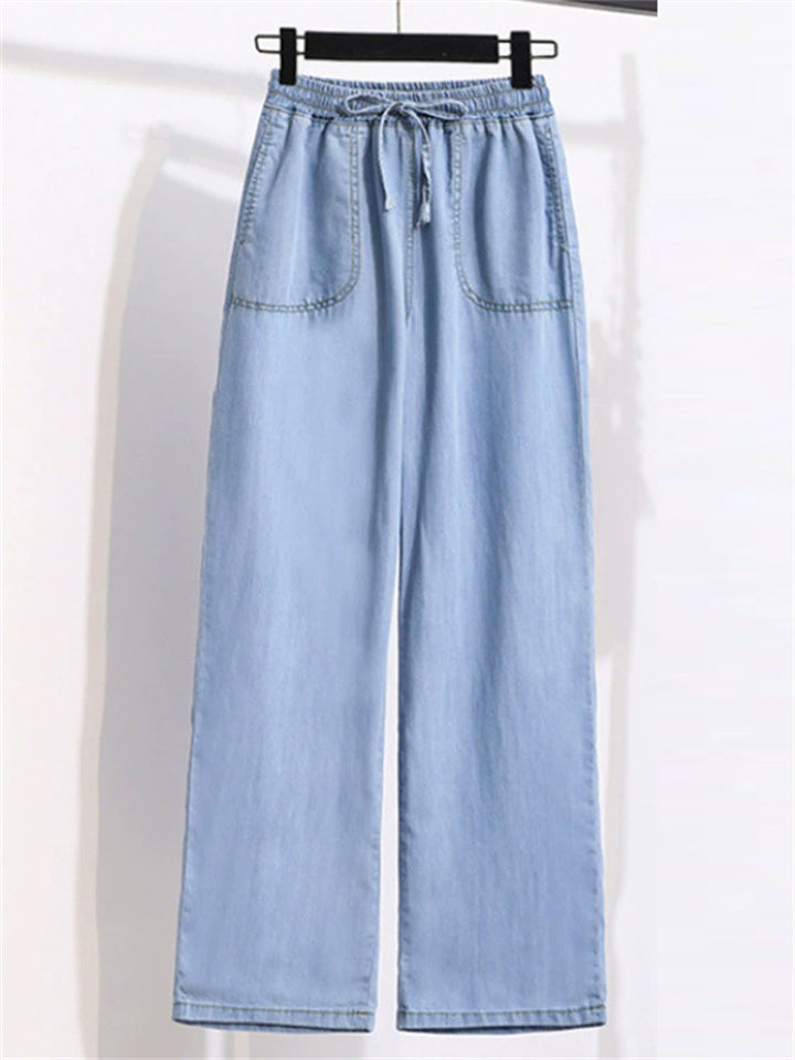 Women's Summer Cool Solid Color Elastic Waist Drawstring Pants