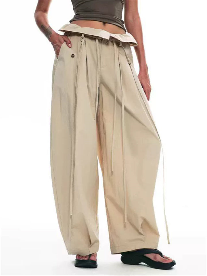 Women's Trendy Summer Solid Color Ruffled Waist Wide Leg Pants
